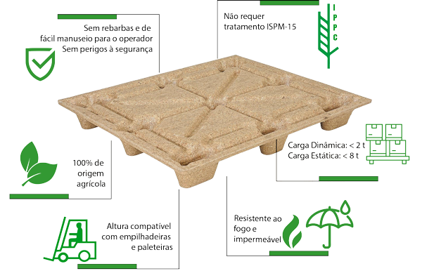 Obtenha o alto desempenho de que necessita com um palete que é tão bom para o seu negócio como para o planeta. Por ser feito de subprodutos 100% agrícolas, ele retorna à terra no final de sua vida útil, deixando zero resíduos para trás.